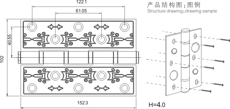 4064D-4BB 不銹鋼花紋合頁