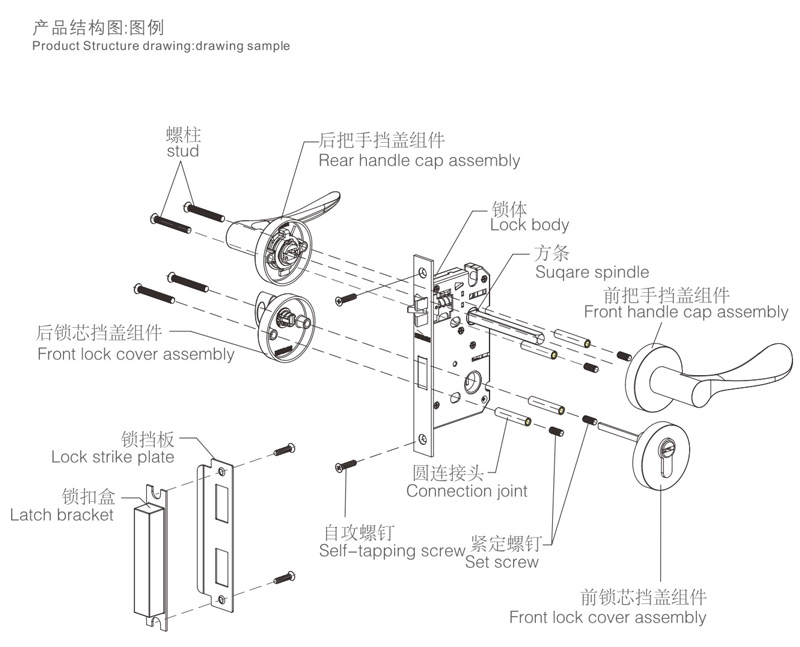 6擰緊螺釘,安裝扣板及扣盒,對齊鎖體,應使鎖舌與之配合順暢,擰緊螺釘(如上圖:H)。