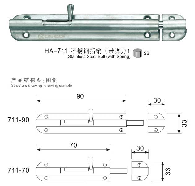 插銷安裝應根據(jù)不同的使用要求來選配,如門款,門的尺寸,安裝位置。