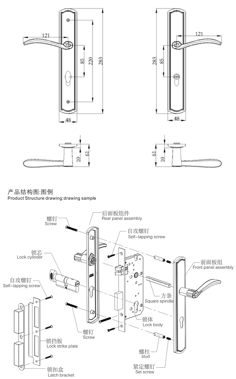 6擰緊螺釘,安裝扣板及扣盒,對齊鎖體,應(yīng)使鎖舌與之配合順暢,擰緊螺釘(如上圖:H)。