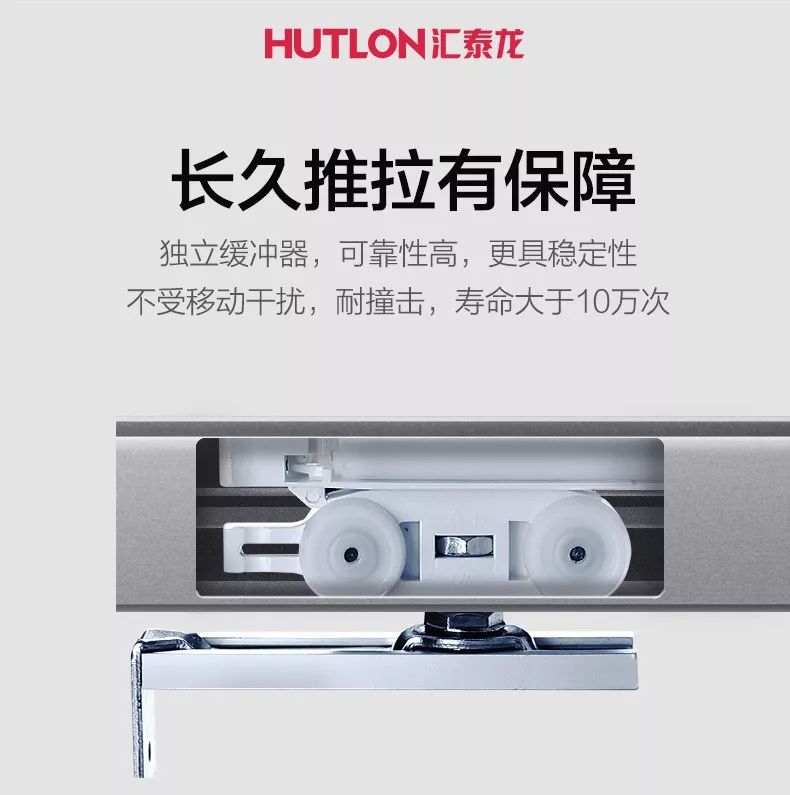 匯泰龍HE-1801緩沖吊輪采用了2只獨立式緩沖器,有雙向緩沖自閉功能,緩沖開關門,避免碰撞門框、防夾手。