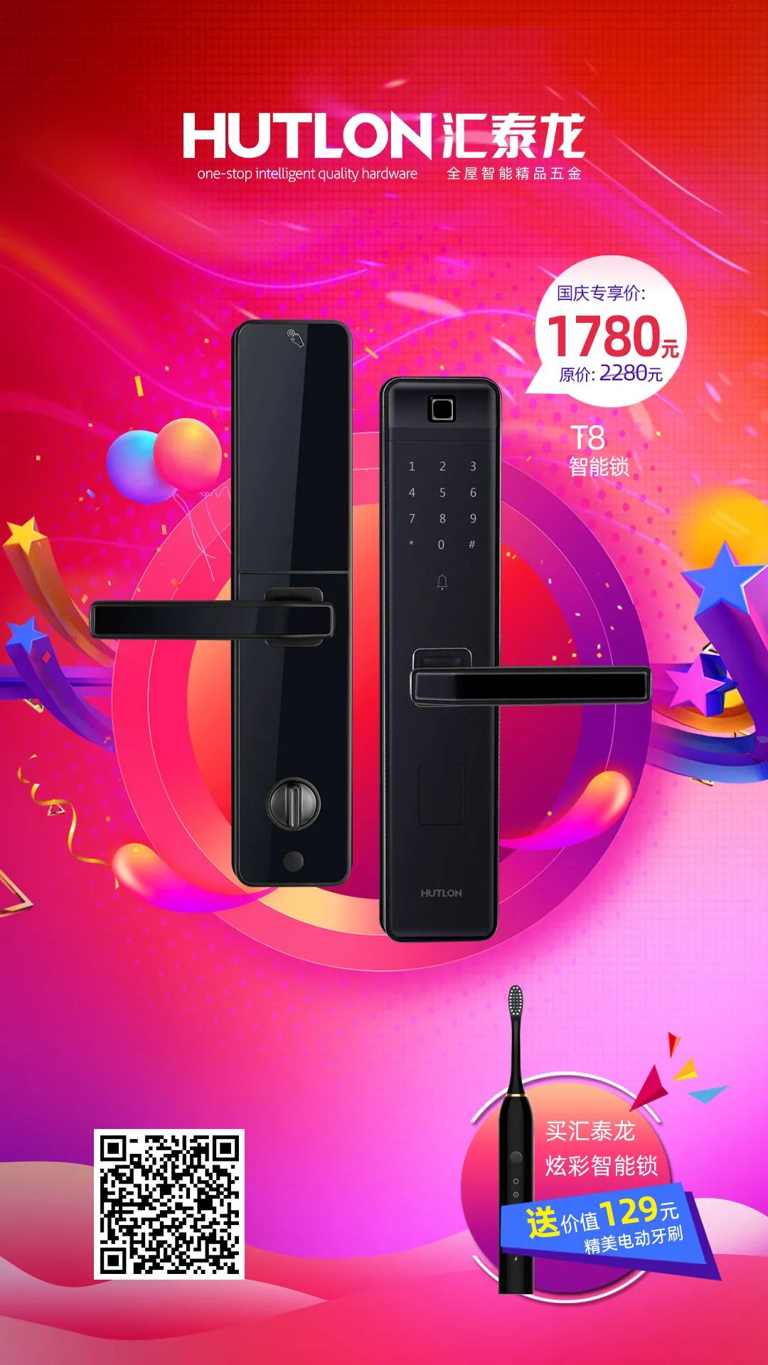匯泰龍T8智能鎖擁有指紋、密碼、感應卡等四種開鎖方式,拋掉鑰匙,輕松出行。