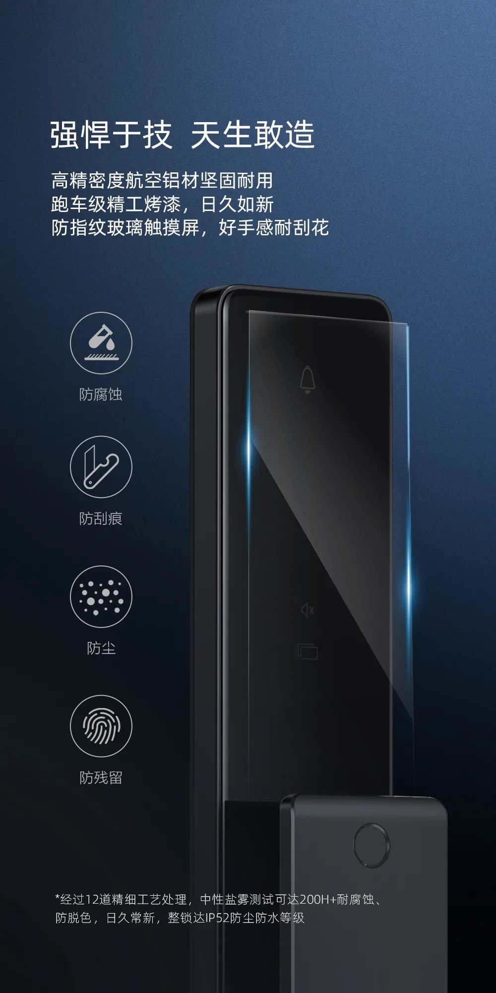 ☆ 聯(lián)網(wǎng)狀態(tài)顯示、低電量燈光與語音提示、指紋識別燈效提示,門鎖狀況可視化;