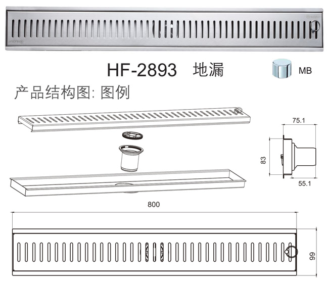長條形地漏擁有大面積的格柵,減少頭發等異物堵塞格柵,影響排水的可能,加快下水。長條形地漏內部有較大空間的凹槽,能存下更多的積水。哪怕有積水,積水也不容易浸腳,淋浴房使用起來更為干爽順心。因長條形地漏排水坡度要求較低,施工難度也較低。