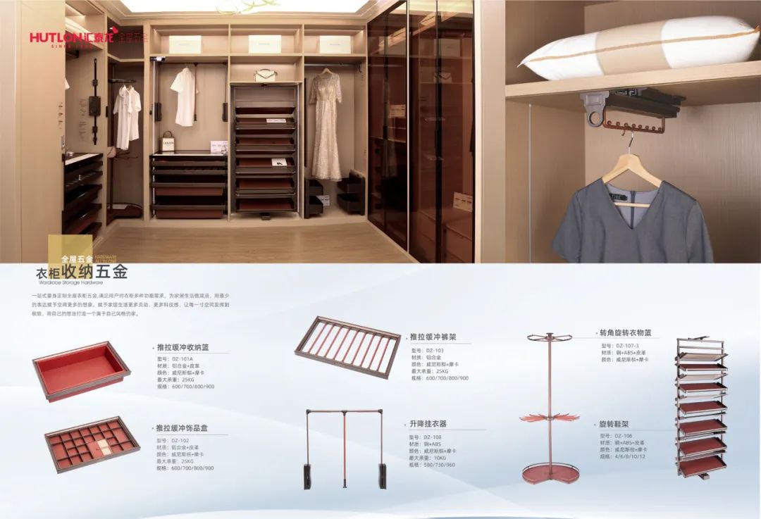 充分利用衣柜與衣帽間的每一寸空間,運用緩沖收納籃、緩沖飾品籃、緩沖褲架、頂裝掛衣架、升降掛衣架、轉角選擇衣物籃、旋轉鞋架等多種款式的衣柜收納五金,一站式量身定制全屋衣柜五金,不僅讓衣褲鞋襪、飾品有“容身之所”,更讓它們在最適合的地方展示出自己的魅力,讓用戶可以快速挑選到“戰甲”,應對事業場、生活場和情感場。