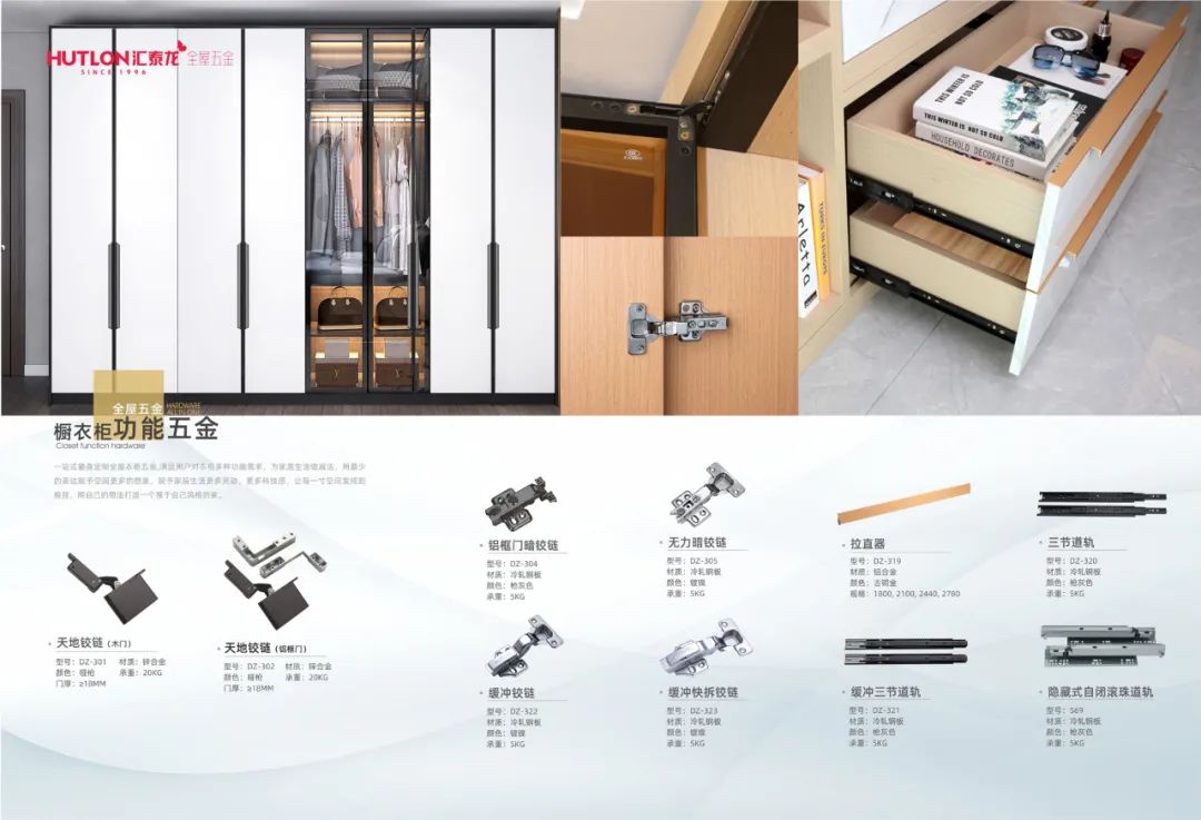 匯泰龍功能五金,藏身于櫥衣柜內,在起著承重、開合、定位與開門后支撐等重要作用外,還擁有開合時亮關燈、緩沖自閉等功能,適用于櫥衣柜吊柜、抽屜、地柜等細分功能區的使用,讓用戶在每一次使用,都能感受到功能五金帶來的貼心生活體驗。