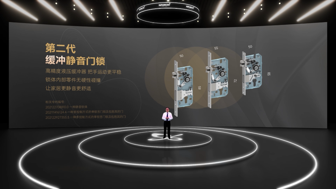 為滿(mǎn)足人們對(duì)舒適家居環(huán)境的向往,張總在演講伊始指出匯泰龍緩沖靜音技術(shù),廣泛應(yīng)用在緩沖靜音門(mén)鎖、緩沖鉸鏈,緩沖道軌、緩沖移門(mén)吊輪,以“緩沖的視覺(jué)感知+靜音的聽(tīng)覺(jué)感知”,實(shí)現(xiàn)舒適安靜的體驗(yàn)。而其中,緩沖靜音門(mén)鎖是匯泰龍緩沖靜音技術(shù)應(yīng)用的主要產(chǎn)品。