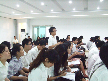 5月20日18:00,所有參與培訓(xùn)人員準(zhǔn)時(shí)來到培訓(xùn)會(huì)場(chǎng)——裝修一新的新基地五樓多功能會(huì)議廳。經(jīng)主持人簡(jiǎn)要作培訓(xùn)活動(dòng)說明以后培訓(xùn)正式開始。馮崇恩先生利用三個(gè)小時(shí)的時(shí)間向?qū)W員講解了:產(chǎn)品的生產(chǎn)工藝;產(chǎn)品的工作原理;重點(diǎn)產(chǎn)品的分析;產(chǎn)品使用的注意事項(xiàng);產(chǎn)品的優(yōu)特點(diǎn)等。培訓(xùn)課程采用現(xiàn)代多媒體技術(shù),圖片、影像、圖解結(jié)合現(xiàn)場(chǎng)產(chǎn)品展示,使整個(gè)培訓(xùn)過程生動(dòng)直觀,另外,馮老師隨機(jī)點(diǎn)名與學(xué)員互動(dòng),了解學(xué)員對(duì)產(chǎn)品知識(shí)的掌握程度和提出相關(guān)專業(yè)問題,啟發(fā)學(xué)員思考,整個(gè)培訓(xùn)過程在良好的學(xué)習(xí)氛圍下進(jìn)行。