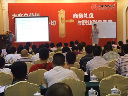 此次培訓由匯泰龍公司主辦,長沙立恒裝飾材料公司協(xié)辦,在長沙明城國際大酒店的白宮廳如期舉行,此次培訓依然邀請了知名企業(yè)培訓講師、卡耐基授權(quán)講師(IOWA)、美國禮儀協(xié)會海外會員