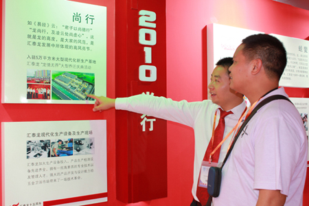 展館內(nèi),匯泰龍十五周年成長之路的歷史長廊以特別的表現(xiàn)手法,展現(xiàn)匯泰龍十五年來隨時(shí)間成長積累和沉淀的品牌文化底蘊(yùn);豐富的產(chǎn)品、精美的產(chǎn)品造型、熱情專業(yè)的服務(wù)吸引了眾多國內(nèi)外客商紛紛參觀、洽談,同時(shí)也成為了各大新聞媒體關(guān)注的焦點(diǎn)。
