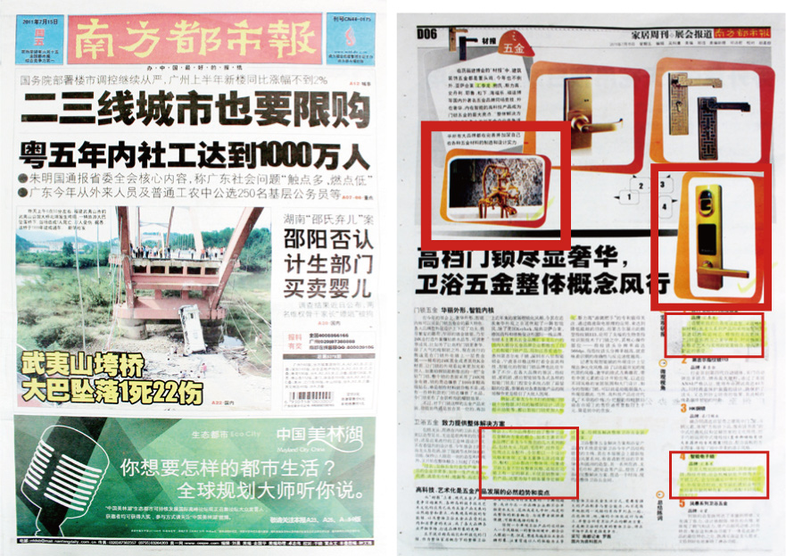 《南方都市報》:高檔門鎖盡顯奢華 衛浴五金整體觀念風行