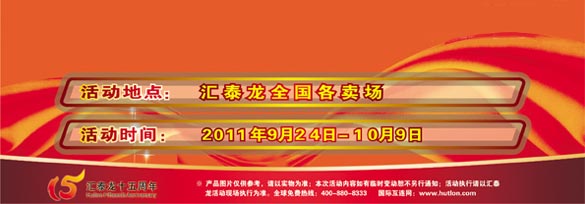 神州大地繁花似錦,祖國長空樂曲如潮。在這美好的日子里,普天同慶,匯泰龍借十五周年之際,傾情回饋廣大消費者。