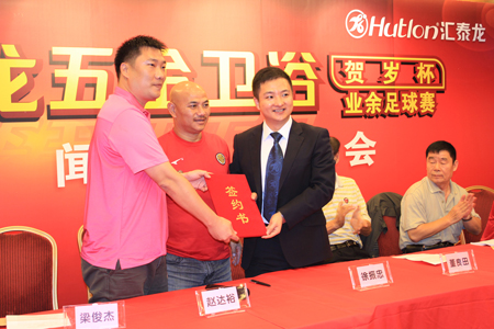 11月19日下午3點,由匯泰龍公司獨家冠名的業余足球界盛事——2012“匯泰龍五金衛浴友好賀歲杯”足球聯賽新聞發布會在廣州舉行。匯泰龍公司總經理徐振忠先生受邀出席了本次新聞發布會,并作了發布會致辭。廣東萬力名人足球俱樂部理事長董良田,廣東省足協副秘書長齊平生,世界體操冠軍盧裕富,世界南拳冠軍陳侖,中國足壇名宿趙達裕等也到會表示祝賀。