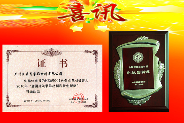 此次會議歷時兩天,在12月3日下午,中國建筑裝飾協會宣布“全國建筑裝飾材料科技創新獎”和“全國建筑裝飾行業推廣應用產品”名單并頒發獎牌。匯泰龍裝飾材料有限公司在此次會議上分別榮膺四項榮譽:全國裝飾材料行業優秀企業、全國裝飾材料行業科技創新獎、董事長