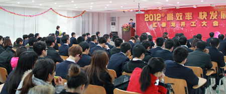 在開工大會上,首先由總經理徐振忠先生發表講話。徐總利用非常嚴謹、詳盡的統計數據總結了十七項匯泰龍公司2011年在內部管理、大型商務營銷活動、營銷渠道和營銷網絡建設、品牌建設、財務管理、供貨及研發能力進一步提高等各個方面取得的成績。同時,徐總也從數據的演示中客觀地指出了公司2011年發展過程中一部分不足 ,也帶領大家對各項不足的項目進行了非常深入和實際的原因分析,對大家在新的一年發揚成績、改進不足提供了明確的方向和嚴格的要求。接著,徐總在講話中提出了匯泰龍公司2012年整體的工作計劃,提出了以業績增長為核心,以目標達成為手段,營銷管理、科技創新、優化管理并駕齊驅的管理模式。在2012年管理模式下,在新的起點、新的目標、新的環境下,公司和徐總對各個職能部門的全體管理人員提出了新的要求和期望,提出了具體的可量化考核的目標。