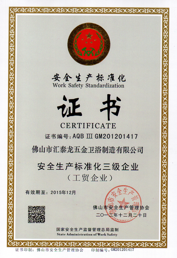 匯泰龍公司積極響應佛山市安全生產委員會的號召,在原本嚴格的安全生產管理機制上,由行政管理部盧榮經理、制造中心生產管理部張祖林經理和其它生產部門負責人聯合組成“安全生產專項管理小組”,深化隱患排查治理,全面夯實安全生產基礎,不斷改善安全生產條件,提高企業安全生產管理水平,努力增強事故防控能力,建立企業自我約束、持續改進的安全管理長效機制,
