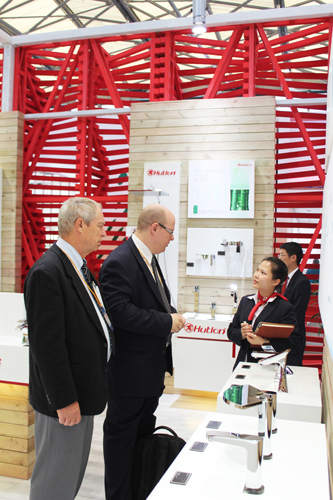 據(jù)匯泰龍營(yíng)銷和品牌負(fù)責(zé)人介紹,本屆廚衛(wèi)展,匯泰龍以高貴典雅、健康時(shí)尚的衛(wèi)浴產(chǎn)品和獨(dú)特的產(chǎn)品展示方式,結(jié)合產(chǎn)品領(lǐng)先的科技性能,傳達(dá)一種為客戶打造宜居生活空間的品牌理念。走進(jìn)匯泰龍展館,一種古樸原色的木紋展示墻給人眼前一亮,仿佛在繁華都市中的一片田園,清新自然。品種豐富的各種衛(wèi)浴產(chǎn)品在綠色竹林的映襯下,更能體現(xiàn)匯泰龍品牌對(duì)于一種宜居生活的追求。前來體驗(yàn)與品鑒的賓客絡(luò)繹不絕,同時(shí)也吸引了許多國(guó)外客商洽談合作事宜,整個(gè)展廳人氣火爆,洽談區(qū)常常是座無虛席。前來參觀的賓客對(duì)匯泰龍的衛(wèi)浴產(chǎn)品品質(zhì)贊口不絕,部分賓客更對(duì)匯泰龍五金衛(wèi)浴品牌產(chǎn)生濃厚的興趣,要求進(jìn)一步洽談與了解,并希望到廣東生產(chǎn)基地參觀。展會(huì)不僅吸引了國(guó)內(nèi)外各路客商紛紛前來參觀,洽談,同時(shí)也成為各大媒體的關(guān)注的焦點(diǎn),新浪家居、搜狐家居、太平洋家居等網(wǎng)站分別對(duì)董事長(zhǎng)陳鴻填先生、總經(jīng)理徐振忠先生、品牌推廣部負(fù)責(zé)人進(jìn)行了專訪。