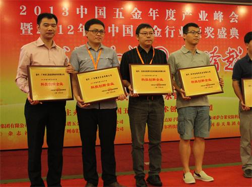 匯泰龍榮獲“五金行業科技創新企業”獎