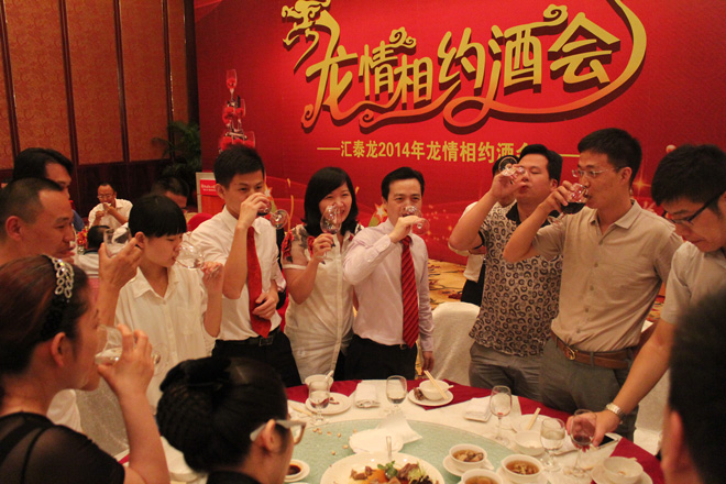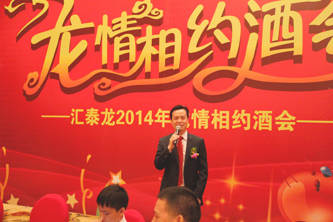 在歡快的開場(chǎng)序曲中,匯泰龍2014年度“龍情相約”酒會(huì)正式開始。匯泰龍公司董事長(zhǎng)——陳鴻填先生在熱烈的掌聲中登臺(tái)并發(fā)表了熱情洋溢的祝酒詞。