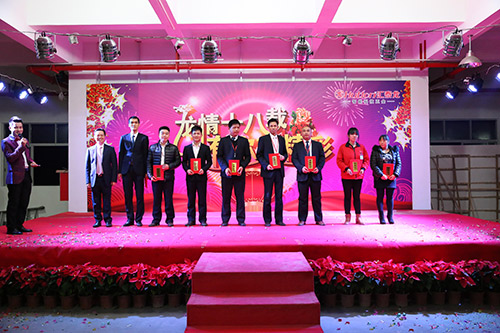 在本次晚會中,安排了2014年度優秀員工、效益標兵頒獎。公司陳董、徐總為工作業績和工作表現突出的“效益標桿”和“優秀員工”頒發了榮譽證書。