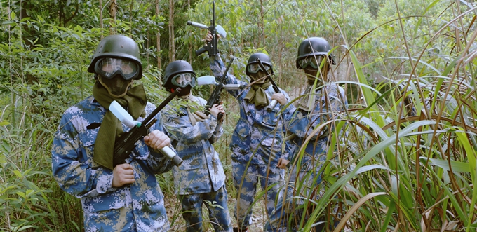 規則講解完畢,兩隊人馬荷槍實彈,浩浩蕩蕩“殺”向山叢中的戰場上。