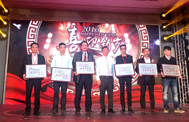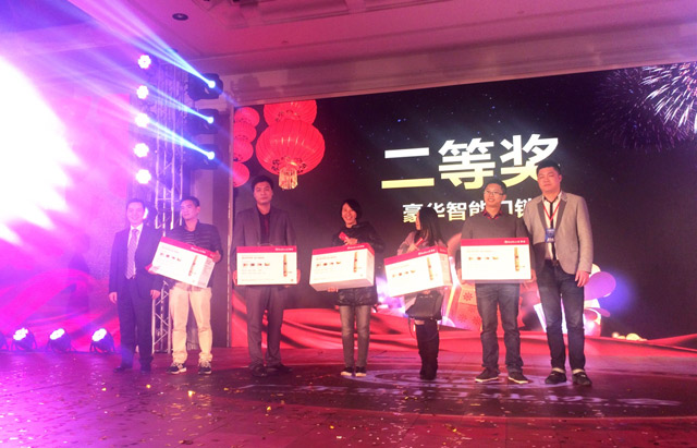 在接下來的優質供應商頒獎儀式上,憑借優秀的產品品質和極高的市場美譽度,匯泰龍榮獲廣東省門業《優秀配材與機械》、《優秀供應商》光榮稱號。晚宴開始后,伴隨著精彩節目的推進,當晚進行了激動人心的抽獎環節,禮品種類豐富,匯泰龍公司贊助的精美豪華智能鎖獎品,給獲獎嘉賓帶去了時尚、高端、智能的科技體驗。