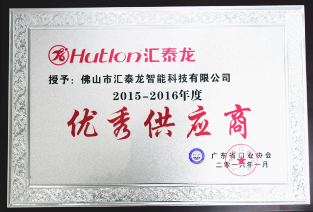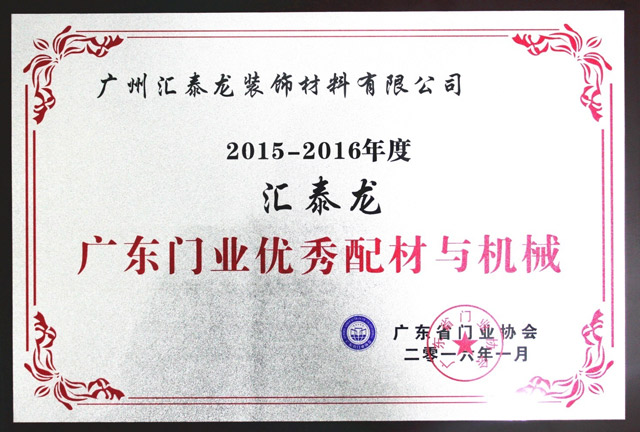 《廣東省門業優秀配材與機械》、《優秀供應商》牌匾