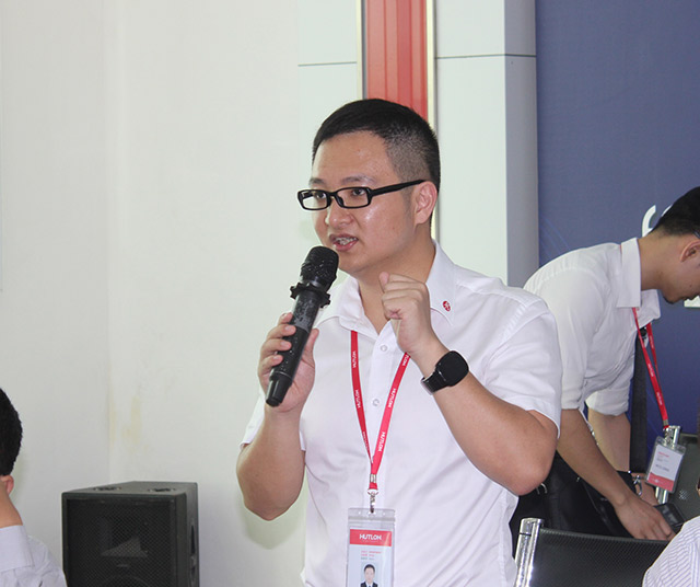 匯泰龍總經理徐振忠為嘉賓介紹并演示智能門鎖