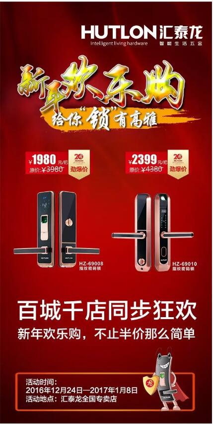 匯聚生活智能量,讓距離不再是問題的匯泰龍云鎖,也將推出圣誕元旦勁爆價!同時還有多款古典、現代門鎖參加本次“新年歡樂購”活動,豈止半價那么簡單!