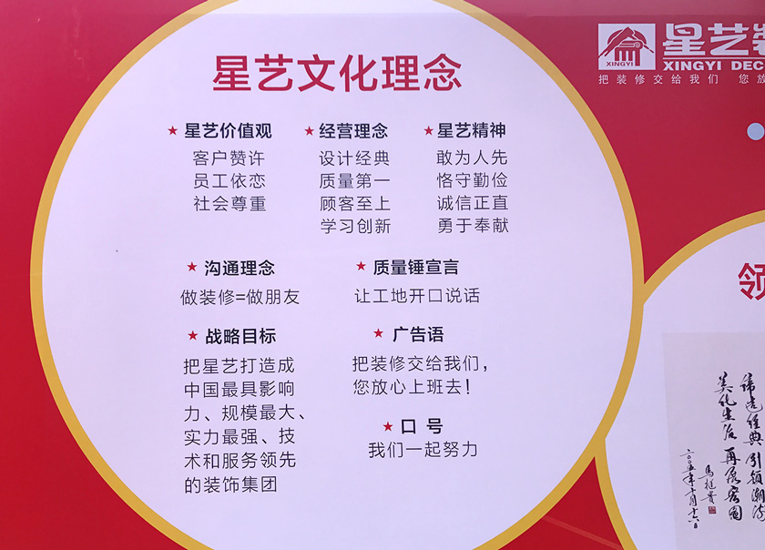 星藝集團成立二十五年來,憑借“砸出文化,砸出標準,砸出品質,砸出放心”的理念,榮獲“中國講誠信、守合同、重質量典范企業”、“中國綠色裝飾施工企業”、“全國住宅裝飾裝修優先企業”、“全國住宅裝飾裝修行業知名品牌企業”、“AAAA級誠信達標企業”、“全國住宅裝飾裝修行業百強企業”、“改革開放30年全國住宅裝飾裝修行業最具影響力企業”“建筑裝修裝飾工程專業承包壹級”資質證書、“中國馳名商標”、“建筑裝飾工程設計專項甲級”資質證書等多項榮譽。