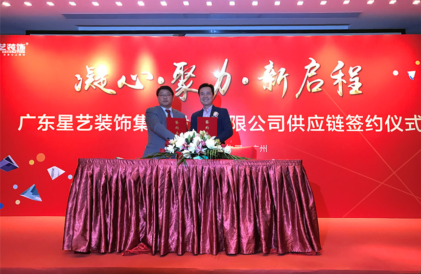 在盛大的喬遷盛典上,匯泰龍董事長陳鴻填先生作為星藝集團甄選的七家主材供應商之一,和星藝裝飾集團總裁余敏進行了戰略合作簽約儀式,并與社會各界眾多賓客共同見證了全新的星藝凝心聚力,開啟新的旅程!
