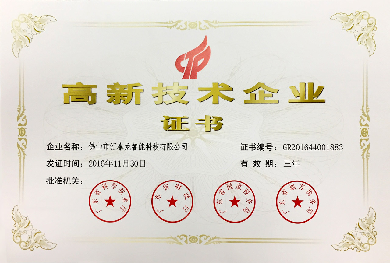 近日,匯泰龍收到廣東省科學(xué)技術(shù)廳、廣東省財(cái)政廳、廣東省國(guó)家稅務(wù)局、廣東省地方稅務(wù)局聯(lián)合頒發(fā)的「高新技術(shù)企業(yè)證書」。