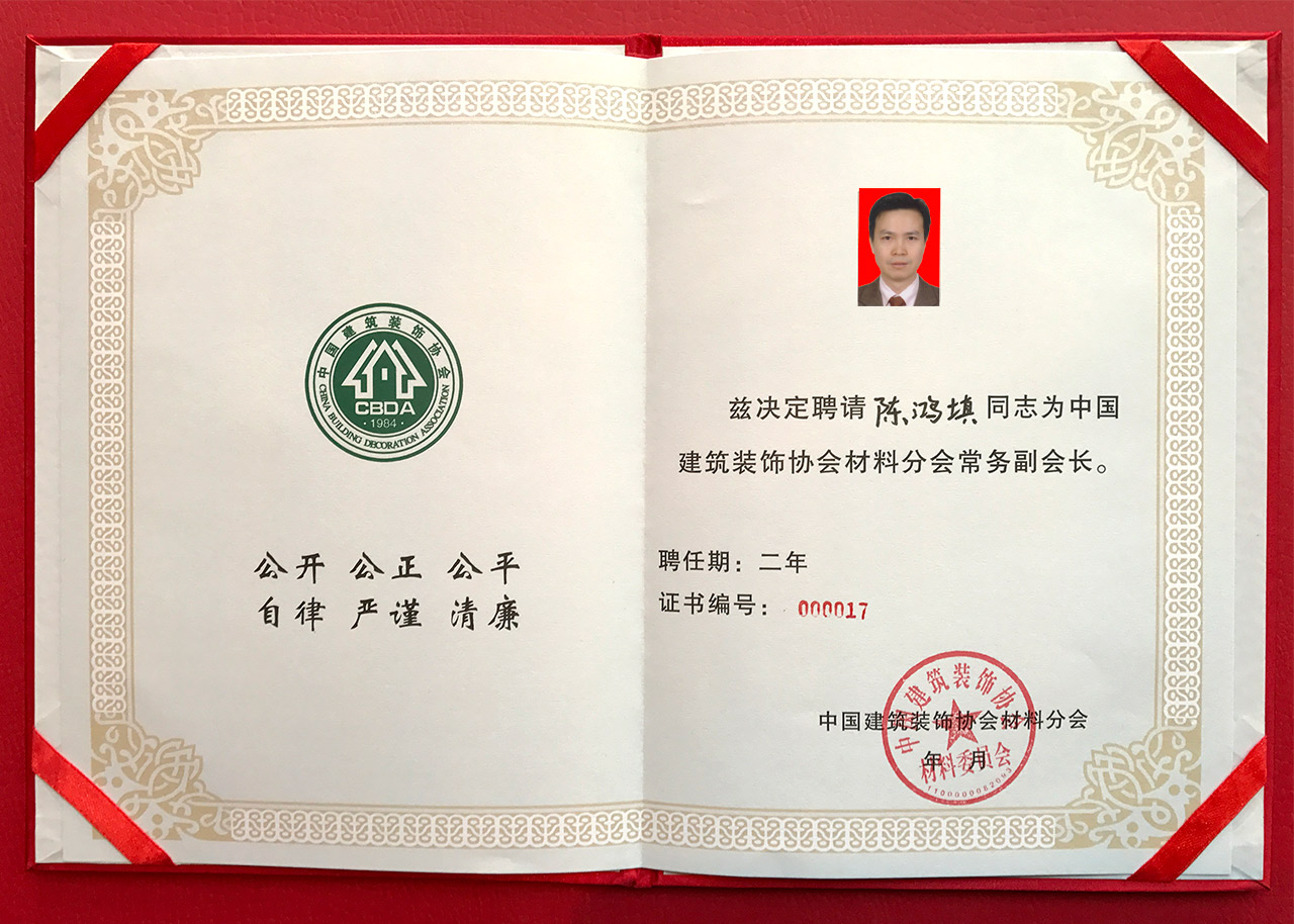 匯泰龍董事長陳鴻填先生榮膺「中國建筑裝飾協會材料分會常委副會長」
