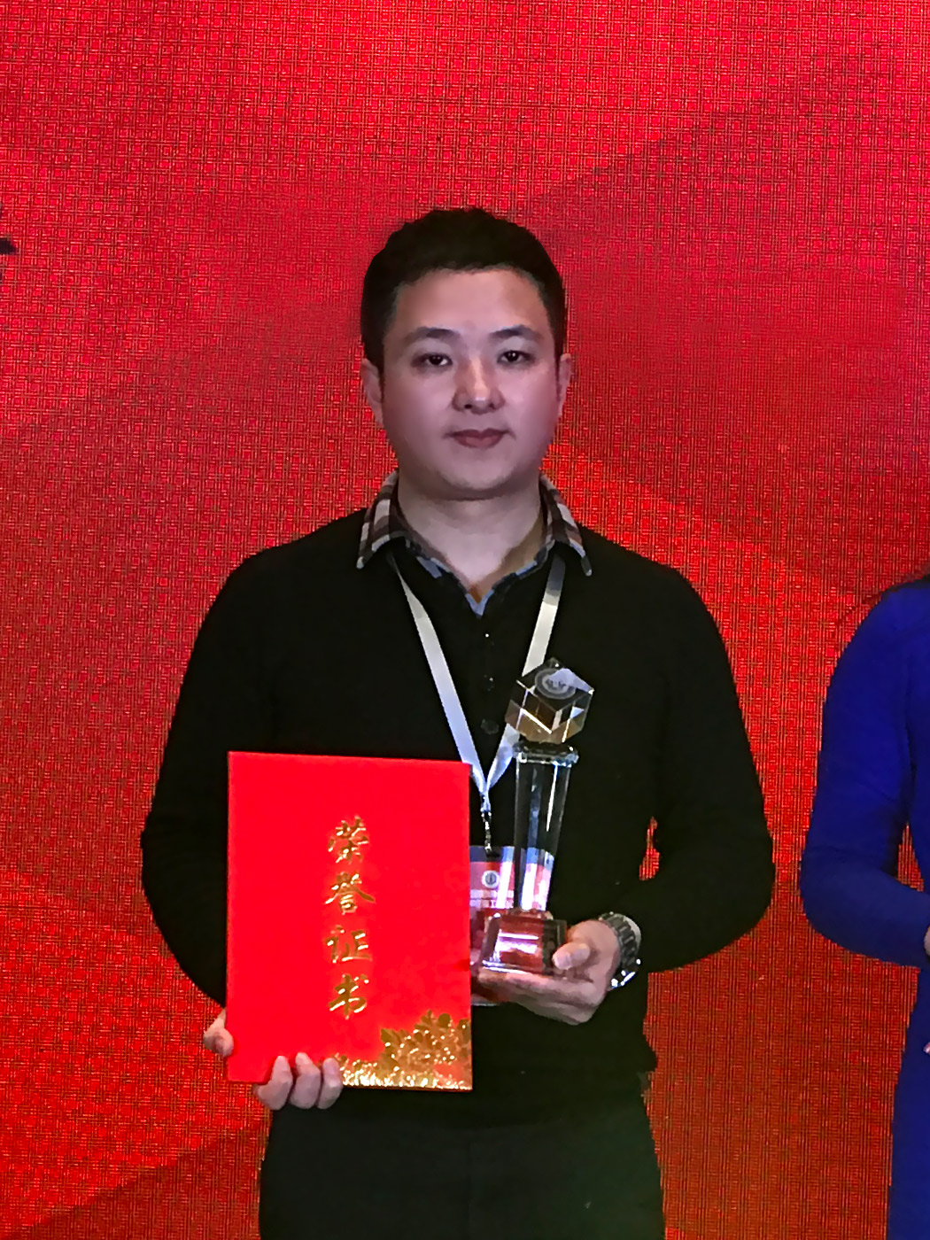 匯泰龍總經理徐振忠先生上臺接受「中國建筑裝飾協會材料分會優秀會員」榮譽