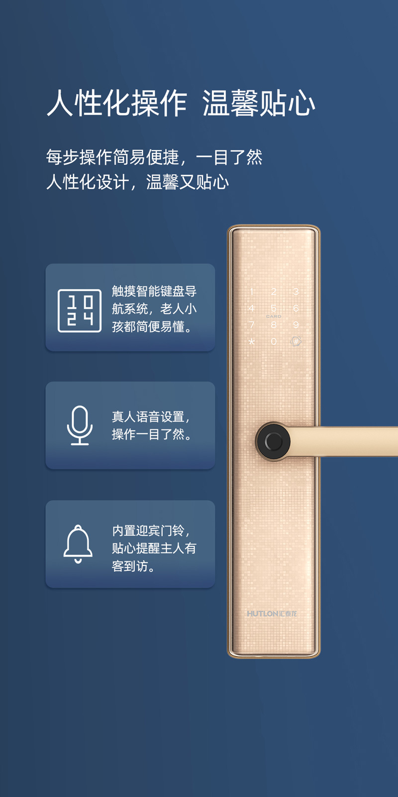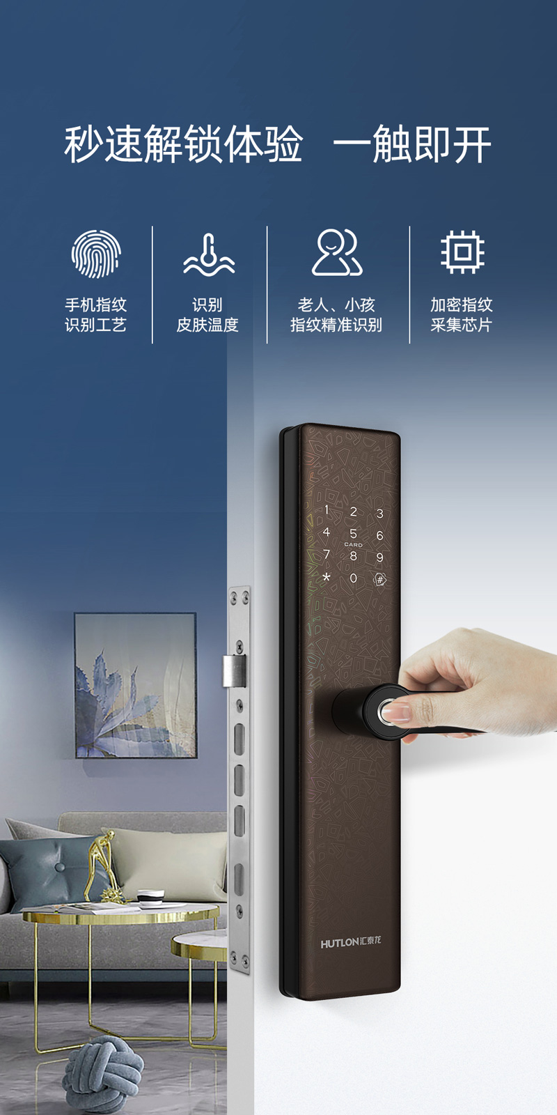 支持指紋、密碼、感應(yīng)卡、機(jī)械鑰匙四合一開鎖方式;