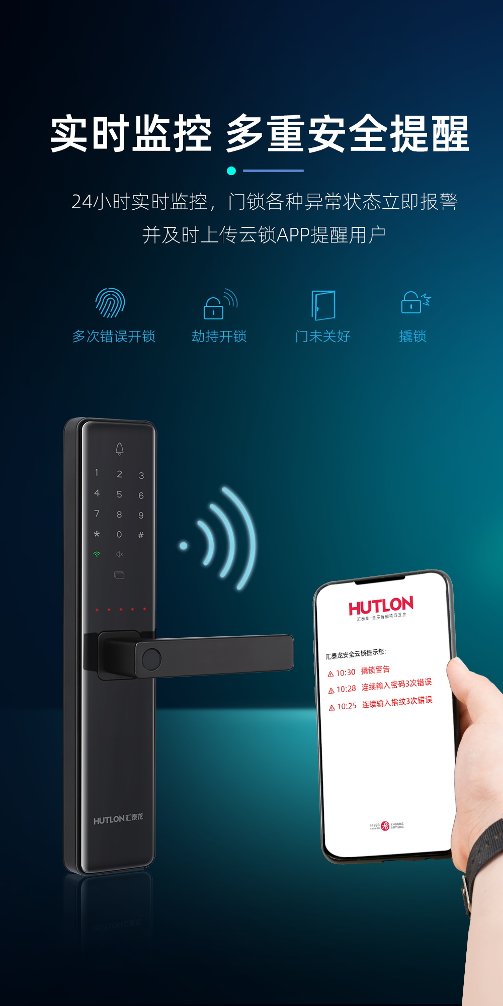 聯(lián)網(wǎng)功能;APP可實(shí)時(shí)顯示開鎖、報(bào)警等信息,可遠(yuǎn)程生成臨時(shí)密碼開鎖,門鎖用戶管理與設(shè)置等操作,更加安全、人性化與便捷;