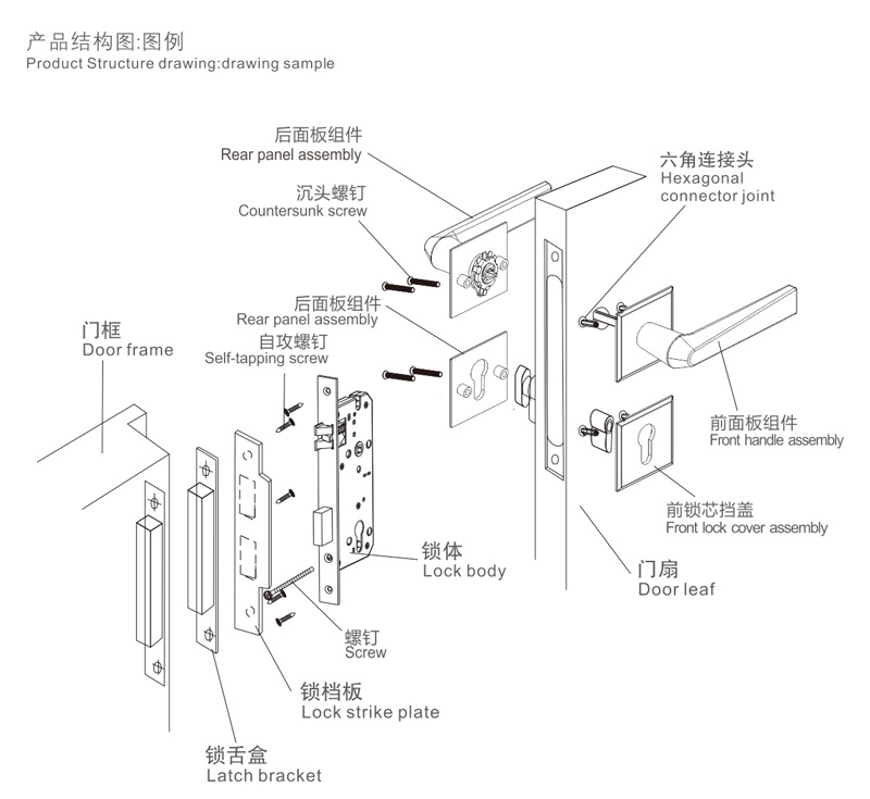 6擰緊螺釘,安裝扣板及扣盒,對齊鎖體,應使鎖舌與之配合順暢,擰緊螺釘(如上圖:H)。