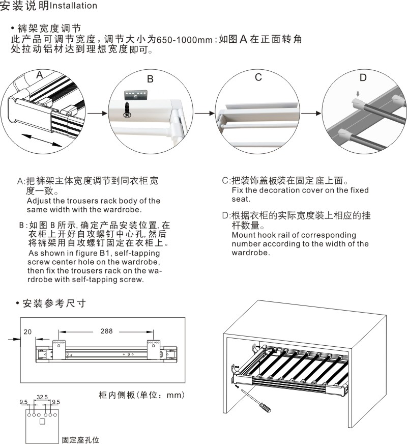 適用衣柜深度:495mm