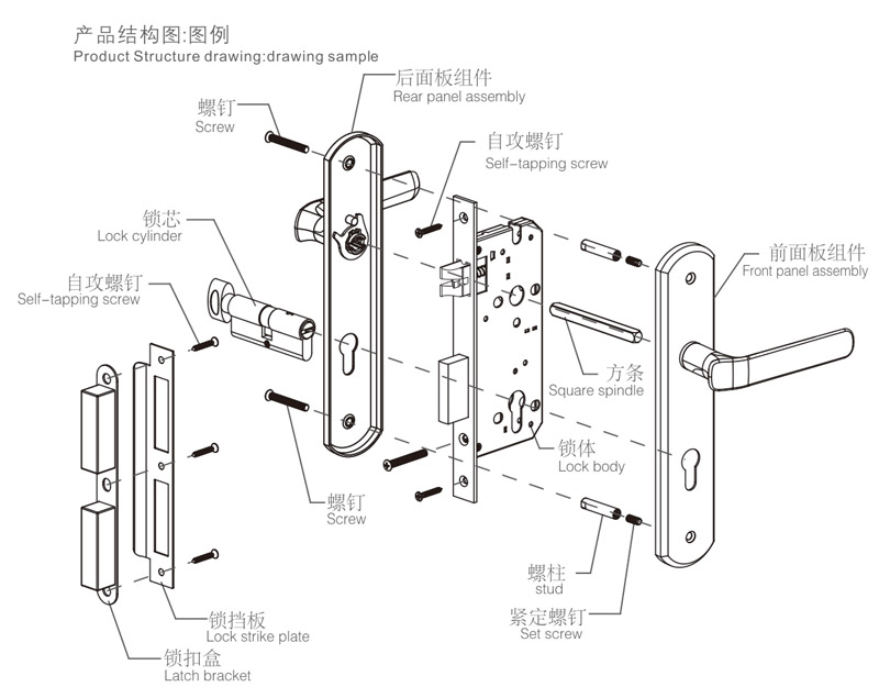 6擰緊螺釘,安裝扣板及扣盒,對齊鎖體,應使鎖舌與之配合順暢,擰緊螺釘(如上圖:H)。