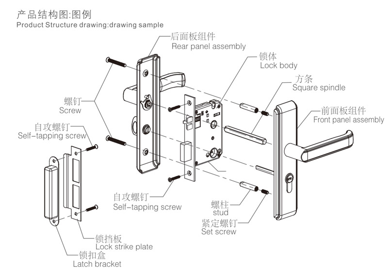 6擰緊螺釘,安裝扣板及扣盒,對齊鎖體,應使鎖舌與之配合順暢,擰緊螺釘(如上圖:H)。